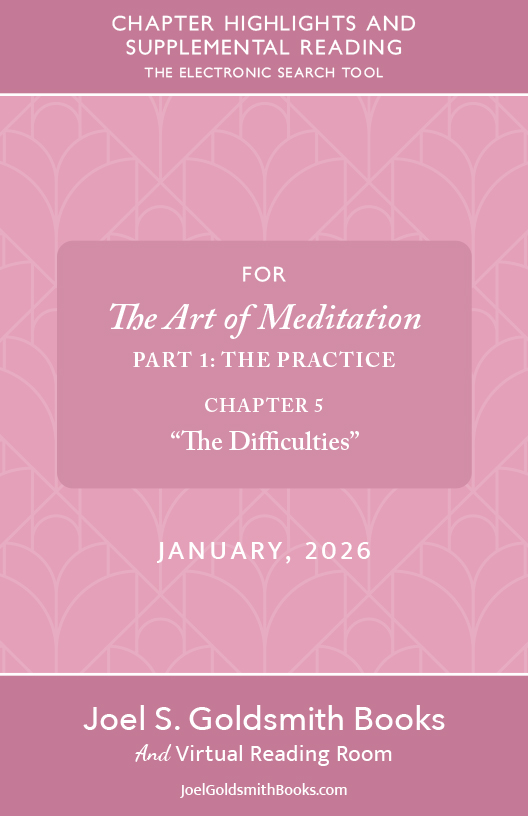 Perfectly timed for the New Year, this chapter brings us back to the practice of meditation. What might be the difficulties we encounter as we sit in meditation or try to establish a “way” of meditation? Joel writes, “Meditation is a conscious experience,” and also he recognizes: “Meditation is a difficult art to master.” He movingly describes his own experience sitting with only his conviction that if he could touch God, it would take hold of his life. After eight months he had one second of realization. His actual experience is our living inspiration. This chapter will be one to revisit throughout the year and beyond.